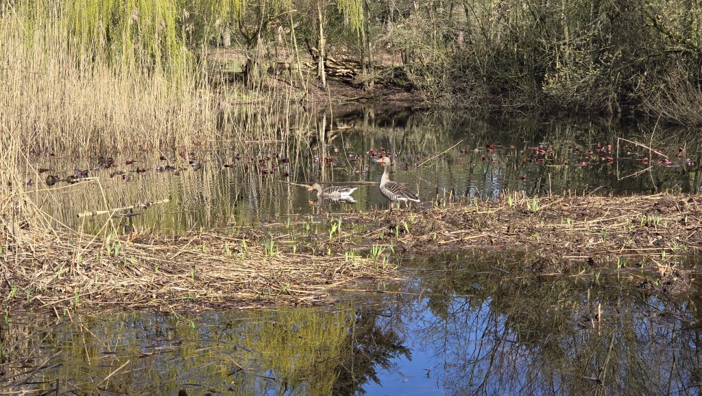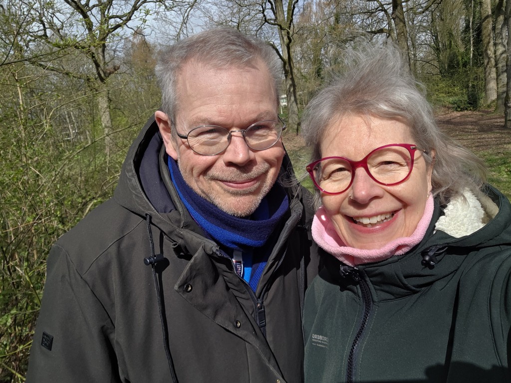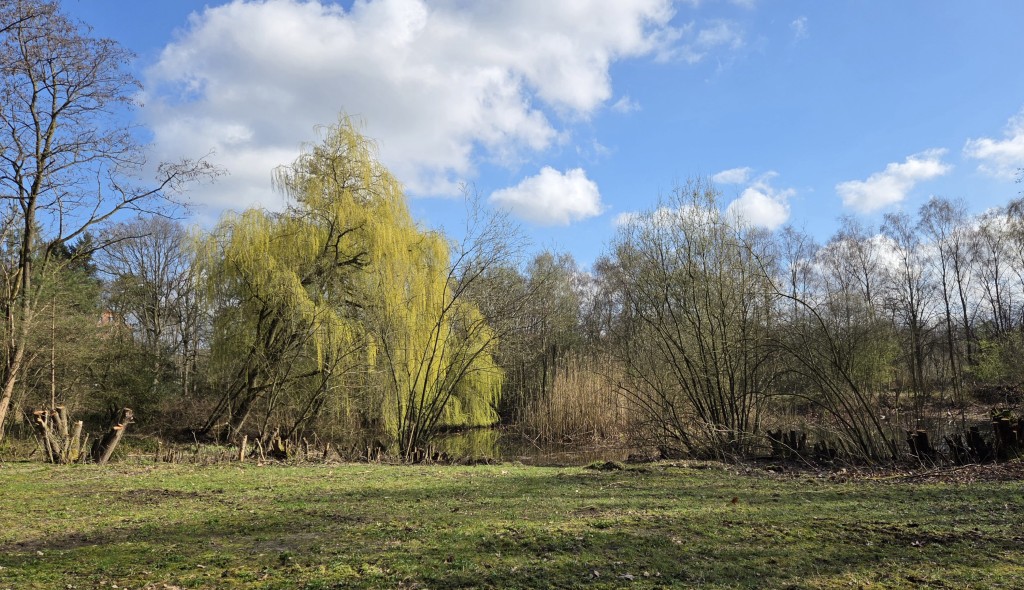Een mooie wandeling in ons bos. Het was voor mij alweer lang geleden dat ik daar tijd en energie voor had. Ik genoot daarom dubbel en dwars. Her en der alweer wat groen en de treurwilg in volle kleur. Heerlijk. Kees wandelt bijna elke zondag wel in het bos.
