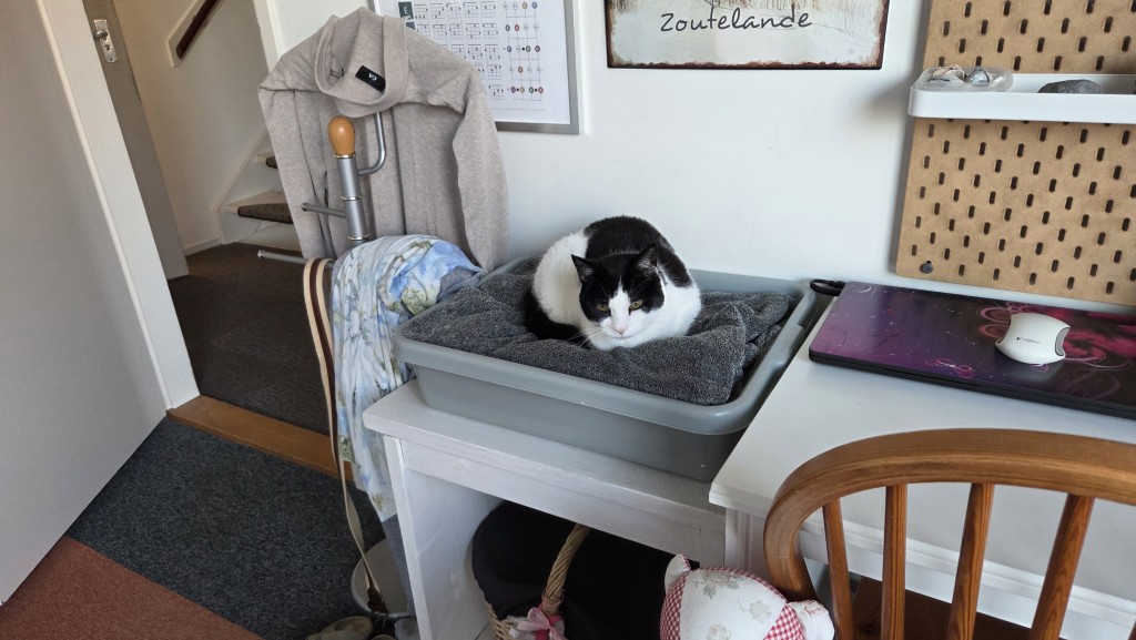 Maar ook Tim zelf wordt de eerste weken flink gemist. Voor Pepsie een dekentje met de geur van Tim. Soms, een enkele keer ligt ze er op, maar vaker ligt ze op haar nieuwe plekjes… op de bank beneden of bij mij op bed.