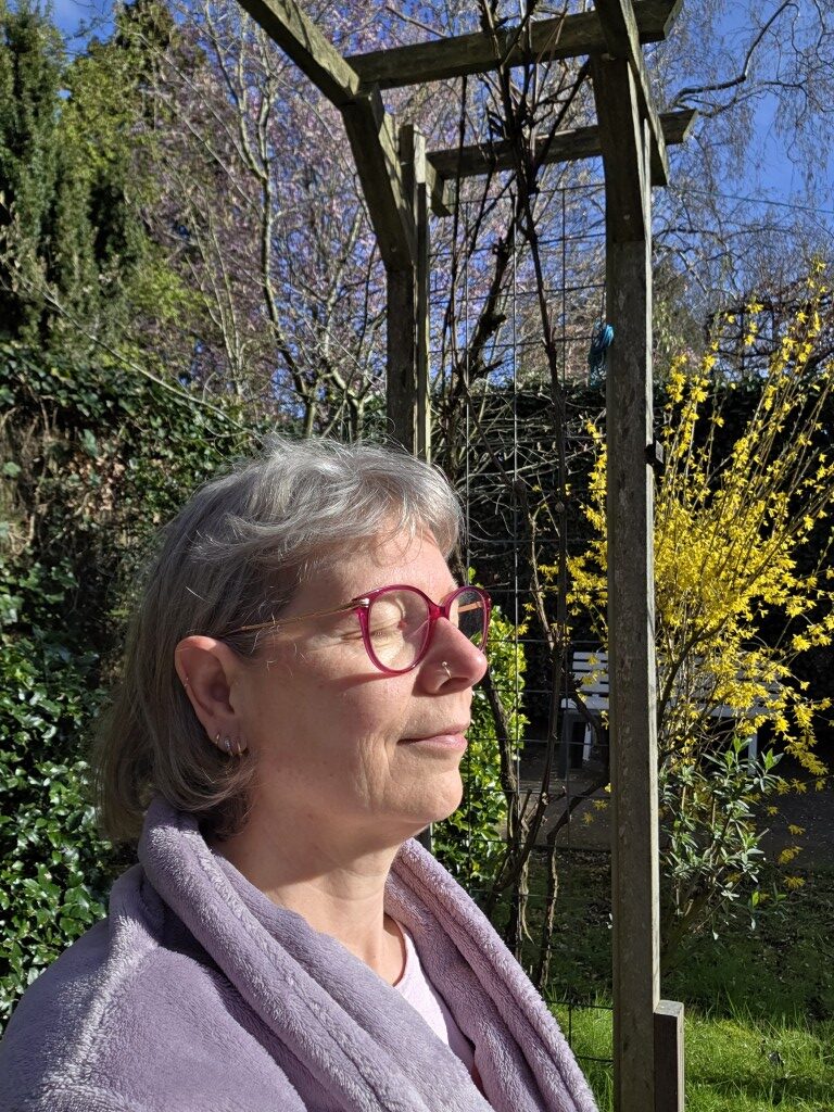 De wind is nog fris, maar de zon heeft al wat kracht en voelt heerlijk warm.
