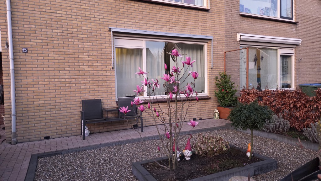 De Magnolia in onze voortuin laat zich dit jaar wel echt van haar mooiste kant zien.