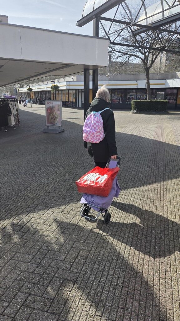 Samen al wandelend de boodschappen gehaald. Toch fijn om mijn karretje mee te nemen.