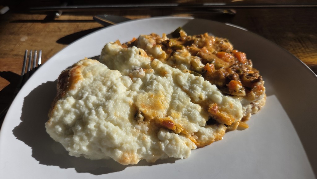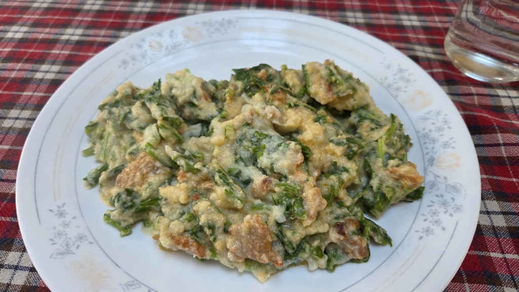 Een stamppot van raapsteeltjes met bloemkool en spekjes, jammie.