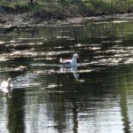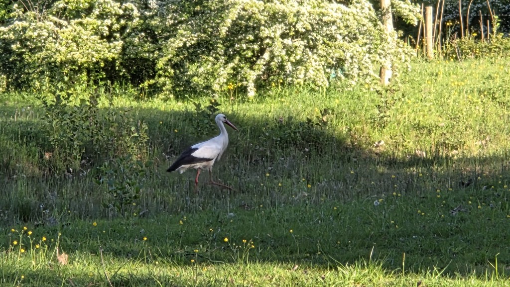 Prachtig om zo een grote vogel van dichtbij te zien, maar ojee onze visjes… gelukkig vloog hij zonder eten weer weg.