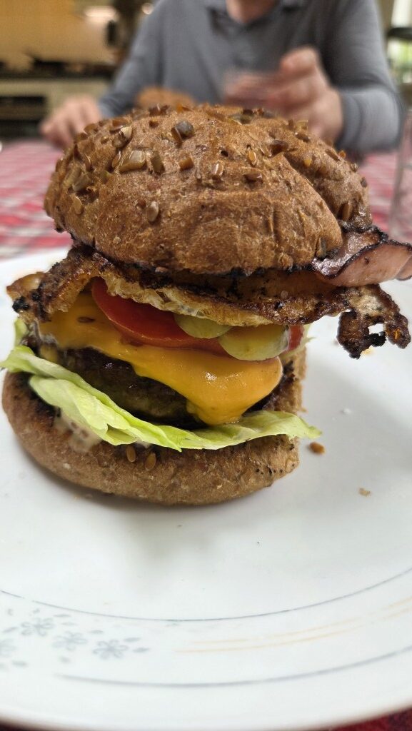 De vriend van… maakte een heerlijke echte flinke broodje hamburger.